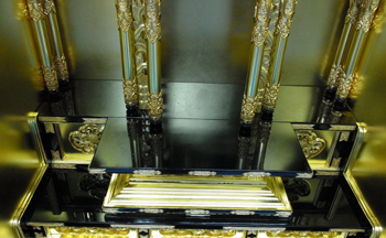 柱や仏具が混在していて金箔を剝がしても・・・・と、ご家庭ではお掃除の難儀な部分です。 当店では本体から柱・金具すべて分解しパーツごとに丁寧に洗浄を施します。 漆塗り個所も専用剤で磨くことで本来のツヤが戻り、金箔の輝きとで相乗効果がございます。